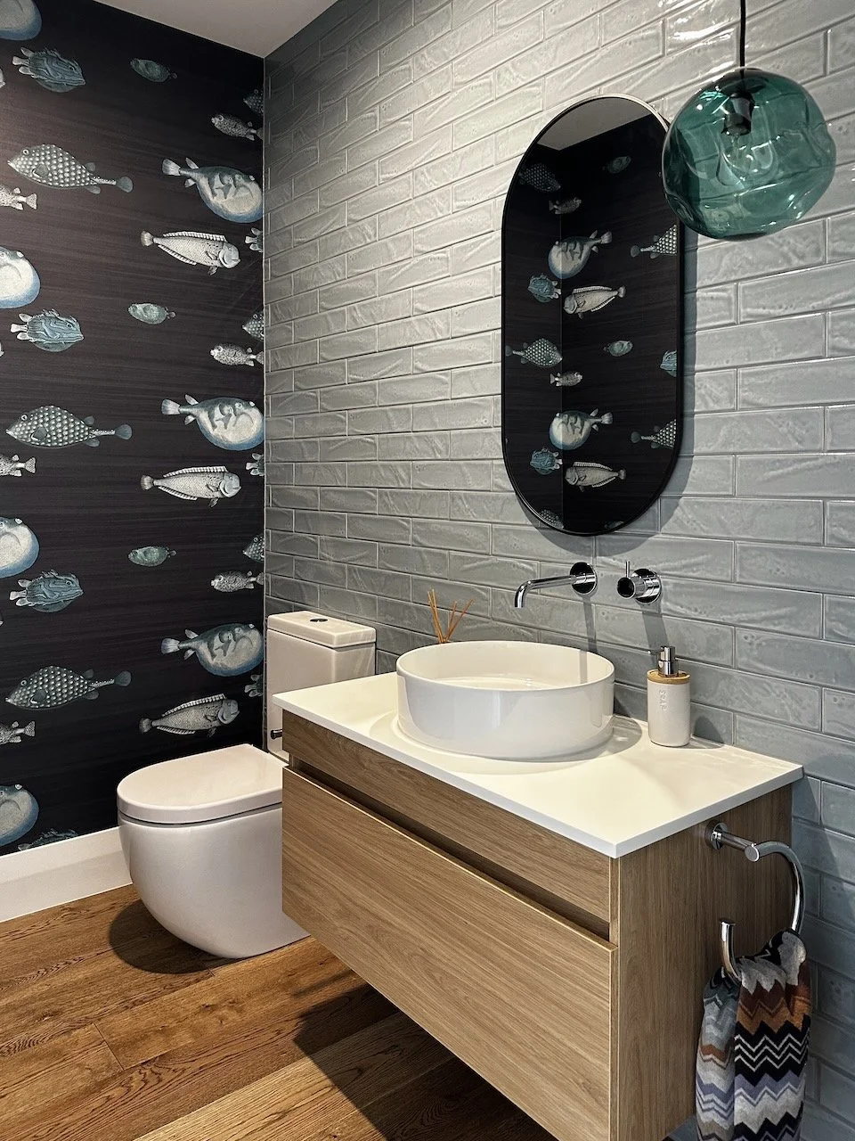 A bit of fun and unexpected colour in the powder room - always a nice surprise for your guests!